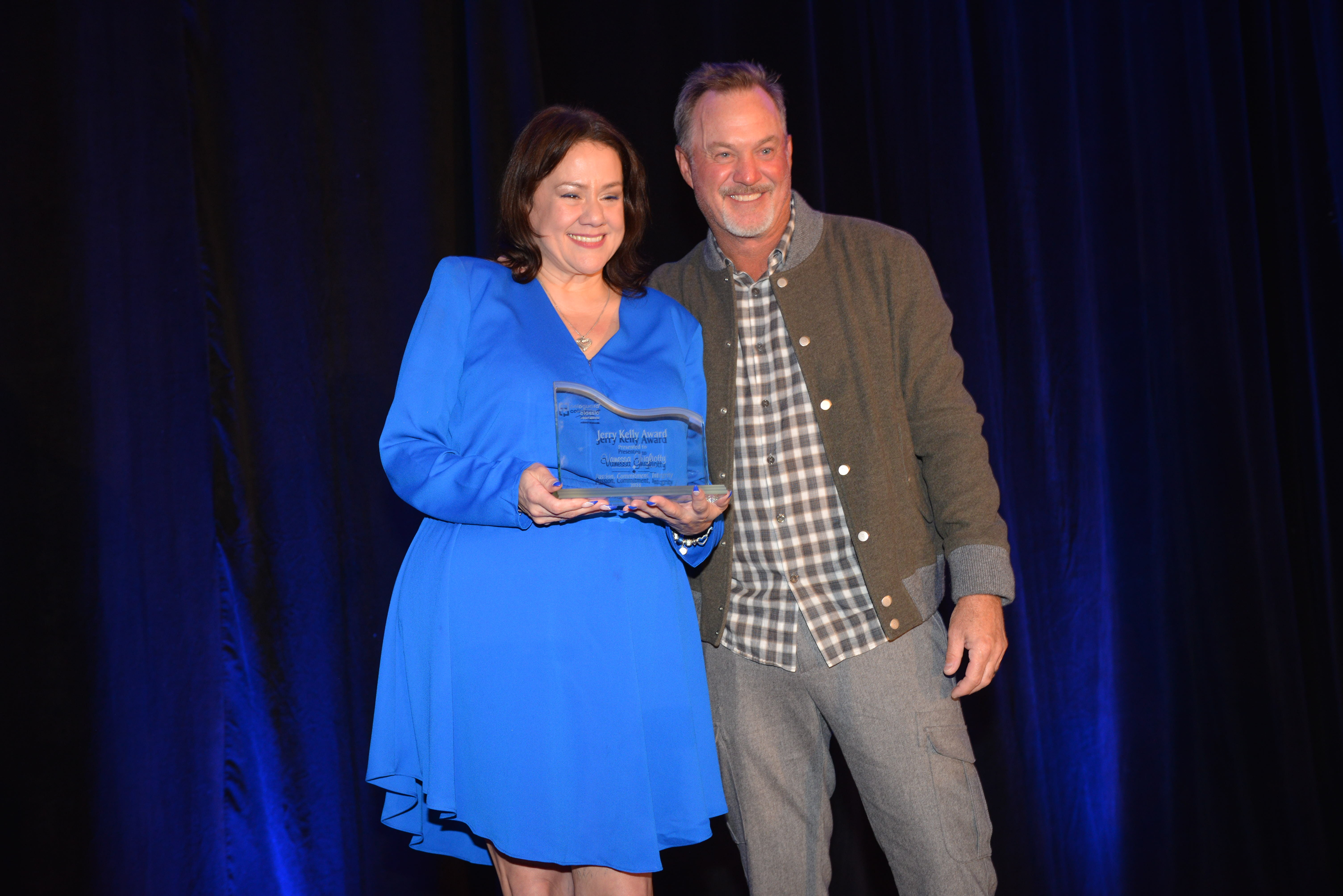 Vanessa Ghigliotty accepting her award from Jerry Kelly