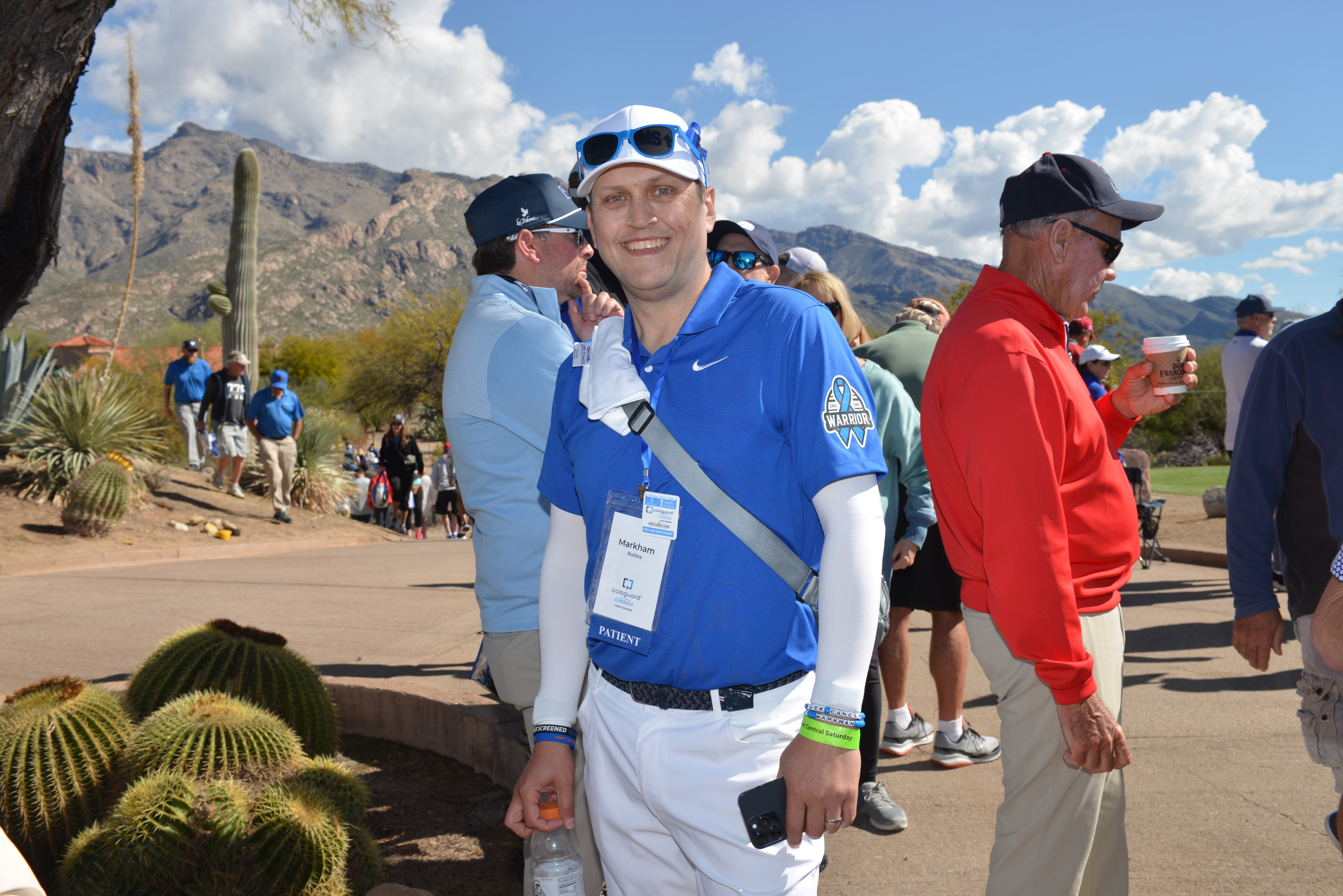 Teeing off in the Pro-Am: During the tournament’s professional-amateur event, several CRC patients, survivors, and caregivers had a chance to play 18 holes with PGA TOUR Champions golfers and other special guests. The event gave participants an advance look at tournament conditions on the Jack Nicklaus-designed course, in the desert foothills of the Santa Catalina Mountains.