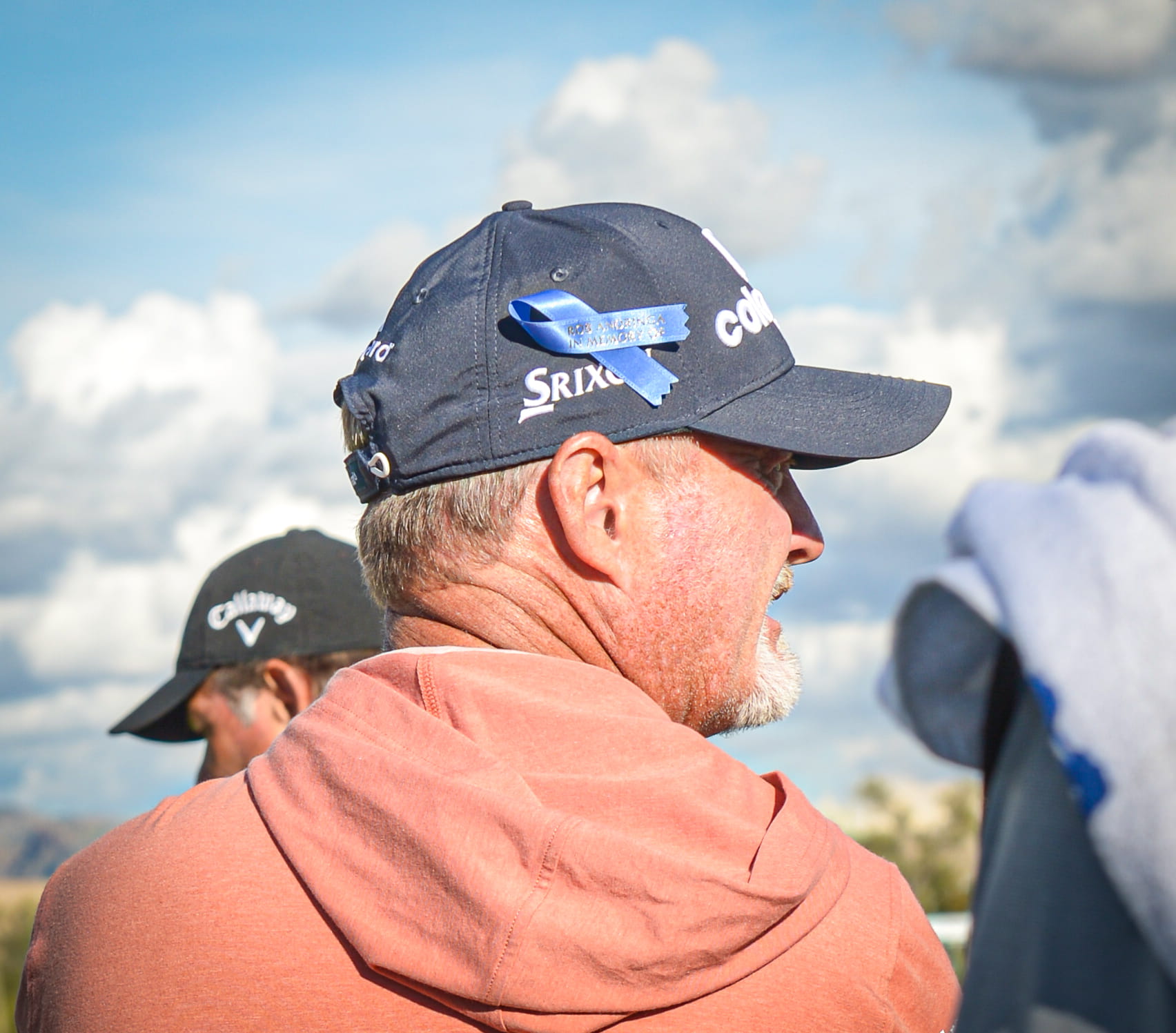 Professional golfer Jerry Kelly wearing a ribbon in memory of Rob Andringa