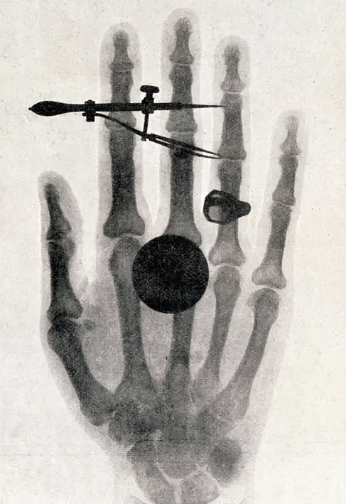 1895: Wilhelm Roentgen's x-ray of his wife's hand. (Source: Getty Images)